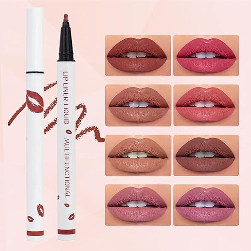 Longwear Liquid Lip Liner, 2 in 1 Long-Lasting Matte Liquid Lipstick Lip Gloss Makeup Tool, Matte Lip Stain Marker Waterproof Lipstick Lip Liner for Women and Girl (#08)(#08)