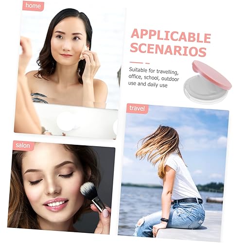 Loose Powder Box Case Set of 2 Portable Mini Cosmetic Containers Makeup Powder Puff Case Mirror for Blush Eye Shadow(Pink)