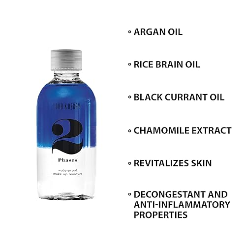 Lord & Berry 2 PHASES Waterproof Soothing Nourishing Makeup Remover With Argan Oil, Rice Bran Oil, Black Currant Oil and Chamomile Extract