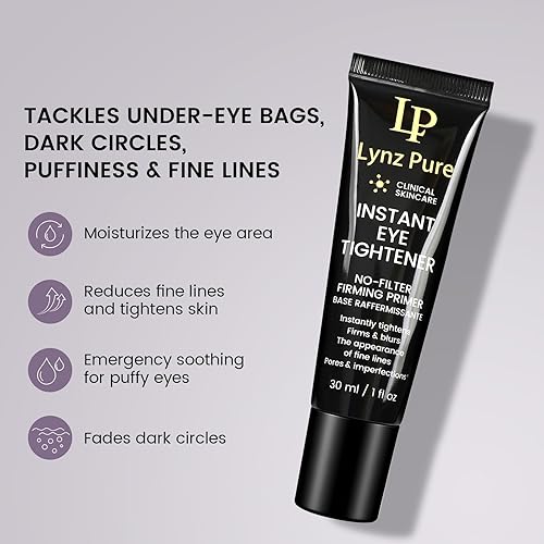 Lynz Pure Instant Eye Tightener, Temporary Firming Eye Cream & Makeup Primer, Smoothes Fine Lines & Minimizes Pores, No Filter Eye Primer 30ml