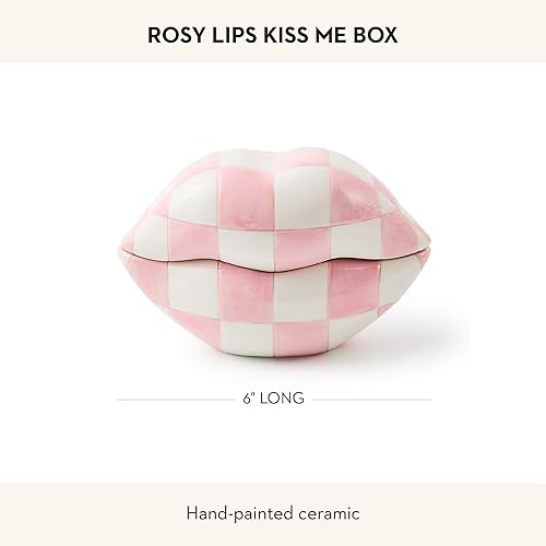MACKENZIE-CHILDS Ceramic Kiss Me Box, Decorative Storage Box for Home Use, Pink-and-White Rosy Lips