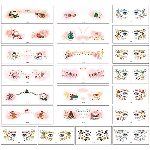 Madrigal 22 Sheets Christmas Eye and Face Tattoo Stickers Tree Snowman Waterproof Tattoo Makeup Transfer Stickers Party Christmas Women's Supplies(Christmas 03)(Christmas 02)