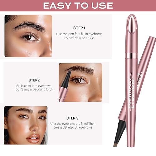 【3D Microblading Eyebrow】Our Microblading Eyebrow Pen are designed with a micro-fork tip to create defined, personalized brows with subtle, precise lines. Suitable for makeup professionals or beginners.Easily apply anyeyebrow shape.
