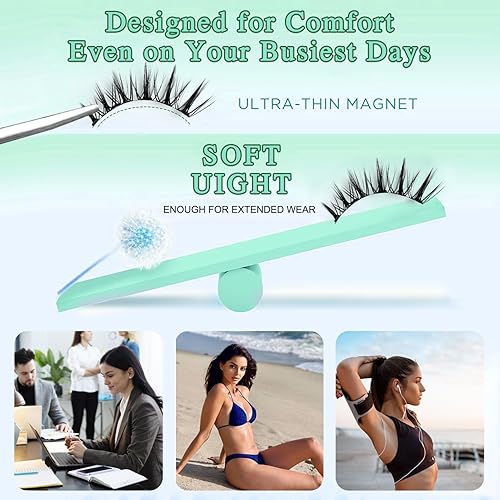 Soft Magnetic Eyelashes: Wispy magnetic eyelashes with applicator are handmade with super soft and comfortable material; Natural magnetic lashes are reusable and light as feathers and smooth as silk.