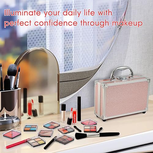 【All-in-One Makeup Set】The makeup set include 6 Pcs Shadow Palette-Total 24 colors, 2 Pcs Blush, 3 Pcs Brush, 2 Pcs Lip Gloss, 2 Pcs Make Up Pencil, 1 Pcs Contour, 1 Pcs Mascara, 1 Reusable Train Case, 1 Pcs Mirror.