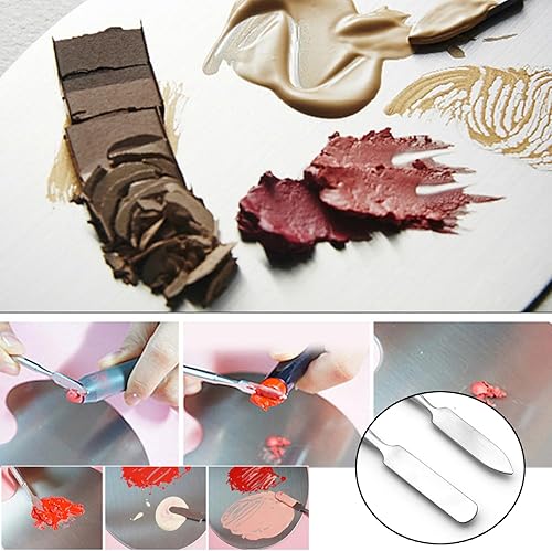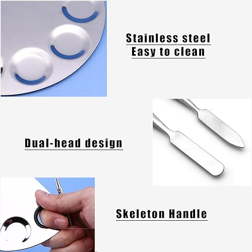 Convenient design:The round hole design of the stainless steel makeup mixing palette is convenient for hanging and storage, comfortable and labor-saving, easy to operate, the spatula has a double-ended design, the pointed end and the flat end are easier to color, and make up spatula tool is specially designed for makeup professionals.