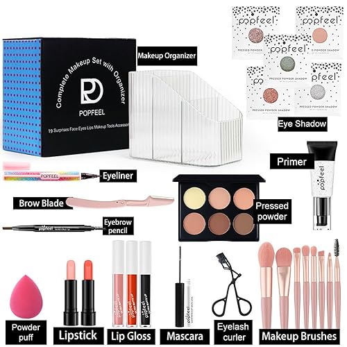 【 All in one makeup kit 】: Contains a wide variety of shades and styles, to let you find the look that suits you best. This cosmetics include Lipstick, Lipgloss, Pressed powder, Makeup Brush, Eyebrow Pencil, Mascara, Primer, Powder puff, Eyelash Curler,Eyeliner,Brow Blade, Makeup Organizer. The most sweetest present for your beloved. All women's essentials in one elegant box and a great gift for any occasion.