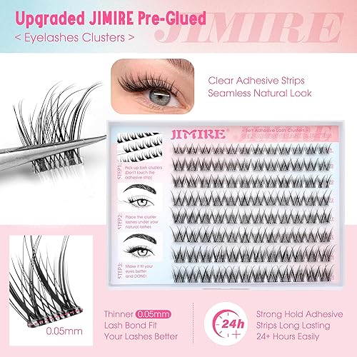 Effortless Application, No Glue Needed: JIMIRE manga self adhesive eyelashes revolutionize your beauty routine by eliminating the need for messy glue applications. Simply press on lashes and go, enjoying a no hassle eyelashes experience that saves you time while ensuring all-day hold