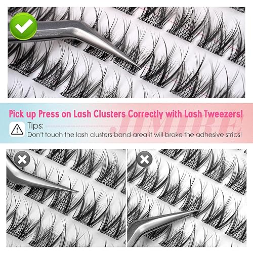 Press On Lashes Natural Look: Achieve a stunning yet authentic appearance with our wispy self adhesive lashes clusters. Designed to seamlessly blend with your natural lashes, they enhance your eyes' charm without appearing overly dramatic or artificial, perfect for both day and evening wear