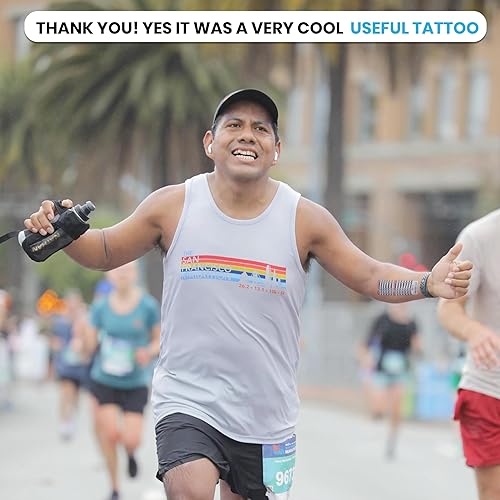 Easy to Read Pace Guide: Our marathon pace tattoo displays clear, easy-to-read mile or kilometer splits to help runners track their pace during races. Positioned on your arm for quick glances, this temporary tattoo eliminates the need for mental math or fumbling with devices while running.