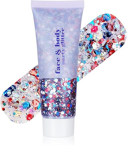 Wide Applications --- This cosmetic chunky glitters flakes gel perfect for your body from head to toe: face, body, eyeshadow, lips, cheeks, hair, nail art, and more,perfect for rave hair accessories and face glitter rave.On the body, dust some on the collarbones and shoulders for a super shimmering effect