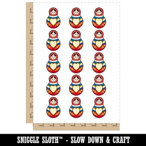 Matryoshka Babushka Russian Nesting Stacking Doll Temporary Tattoo Water Resistant Fake Body Art Set Collection - 54 1" Tattoos (1 Sheet)(15 2-Inch Tattoos (1 Sheet))