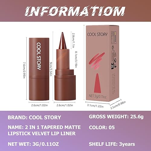 Matte Lip Liner and Lipstick Crayon Shape And Tapered Tip for Perfect Contour and Gradient Effect Waterproof Eyeliner Lip Pencil 3-in-1 Makeup Lip Combo, Purple 2#(5#,0.11 Ounce (Pack of 1))
