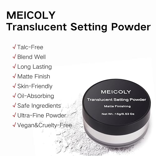 Comment on "MEICOLY Talc-Free Setting Powder with Sifter,Long Lasting Loose Face Powder,Translucent Powder Colorset Powder,Matte Finishing White Face Paint Setting Powder for Halloween SFX Makeup,Oil Control"