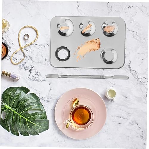 MERRYHAPY Stainless Steel Cosmetic Mixing Plate with Spatula Set for Foundation and Eyeshadow Durable and Easy to Clean Makeup Palette for Nail Art and Pigment Blending