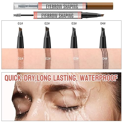 【Natural and Defined Brows】: Say goodbye to sparse and shapeless brows with our magical dual-ended brow pen. The precise ultra-fine brush-tip allows you to create tiny hair-like strokes, resulting in natural-looking brows. The 4-prong fork-tip applicator is perfect for shading and filling in sparse areas, giving your brows a defined and full appearance.Flick the pencil upwards to create hair-like lines and fill in sparse areas. Allow to dry. Finally, use brow gel to shape and secure brows to your desired shape.