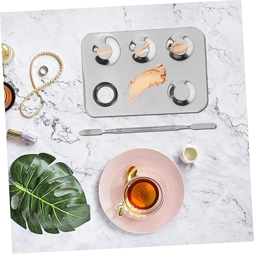 Mikinona Stainless Steel Makeup Mixing Palette with Spatula Portable Foundation and Eyeshadow Blending Plate for Cosmetic Application and Color Mixing Set