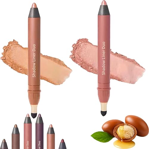 Mitlume Perfect Color Duo-Shadow Liner 2-in-1 Eyeliner & Eyeshadow, Smudge-Proof Waterproof Duo Eye Shadow Stick with Built-in Smudger & Carnauba Wax, Silky Smooth, Effortless Smoky Finish (2pcs,e)(2pcs-b)