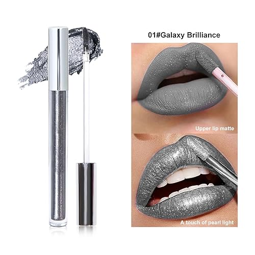 Moily 1PC Premium Liquid Lipstick Gloss Long Lasting Waterproof Formula with High Impact Glitter Pigment Non Sticky and Transfer Resistant Gold One Size(Grey,One Size)