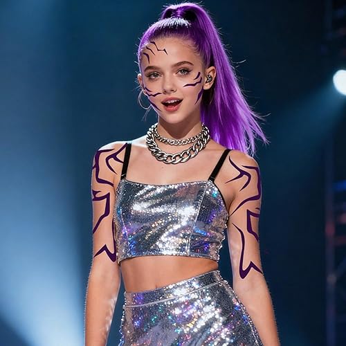 Comment on "Movie Anime Purple Temporary Tattoos Dance Cosplay, Halloween Cosplay Tattoos Stickers Prop Accessories, Water Transfer(Purple)(Purple)"