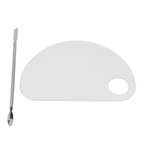 Nail Art Mixing Palette with Spatula Thumb Hole Acrylic Semi Circular Shape Clear Makeup Mixing Tray