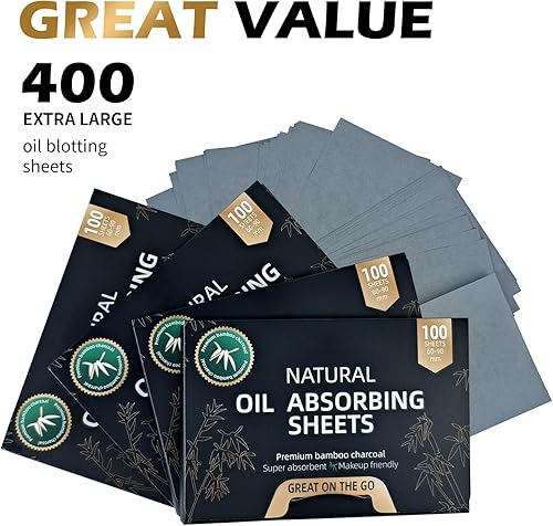 Natural Bamboo Charcoal Oil Blotting Sheets for Face - 4-Pack of 400 Sheets |Friendly Oil Absorbing Papers