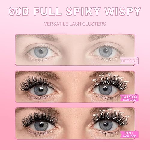 Wispy eyelash clusters kit: Each cluster of lash extension is composed of 30 individual lashes. The unique design of the 3D spiky effect makes each eyelash clusters not only have the texture similar to that of real human lashes but also present a gorgeous and charming visual effect