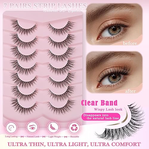 Comment on "Natural Lashes Cat Eye Lashes 13mm Clear Band False Eyelashes Wispy Eyelashes Natural Look 3D Strip Lashes Soft faux Mink Eyelashes Pack 7 Pairs(Wispy 01)"