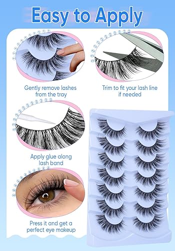 Quality and Reusable: Fake lashes made of upgraded German fiber to make sure each lash has soft feeling but stable curl, eyelashes are reusable and long lasting, each pair of false eyelashes can be used multiple times with proper care; Manga-inspired cat eye lash strips create a wispy effect perfect for achieving an Asian anime character look