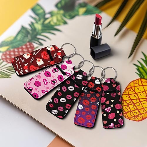 5 Pcs Lipstick Holder Keychain Set: Package contains 2 lipstick holders with different patterns
