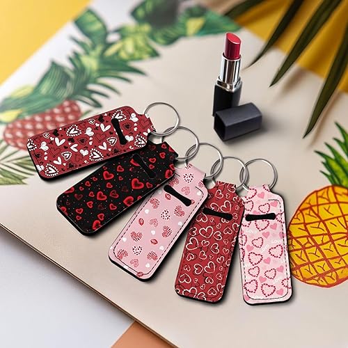 NDISTIN Valentine's Day Love Heart Chapstick Holder Keychain Portable Lip Balm Holder Keychain Bulk Small Lipstick Holder Key Chain Lip Balm Sleeves Keep from Scratched and Dust