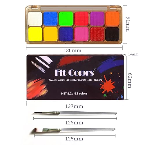 【12 Colors of Face Painting】The water based face and body painting palette contains 12 colors and 2 brushes,can be used for eye ,face and body.By mixing two or more different colors, you will be pleasantly surprised to find a new color.A fun Halloween face paint kit for kids and adults.