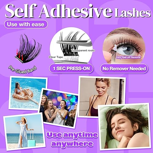 Comment on "No Glue Needed Lashes, Self Adhesive Eyelashes, DIY Lash Cluster Eyelash Extensions Kit 10‑14mm,60pcs Fluffy D Curl Soft Natural Lashes with Tweezers–Fake Cat Eye Wispy Individual Clusters(NGDH1)(Glue-Free - Violet Sky 7)"