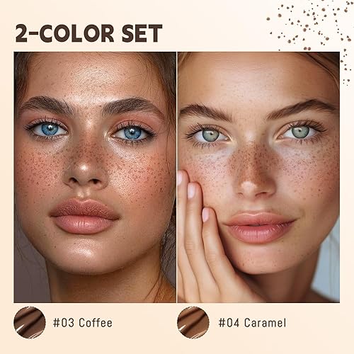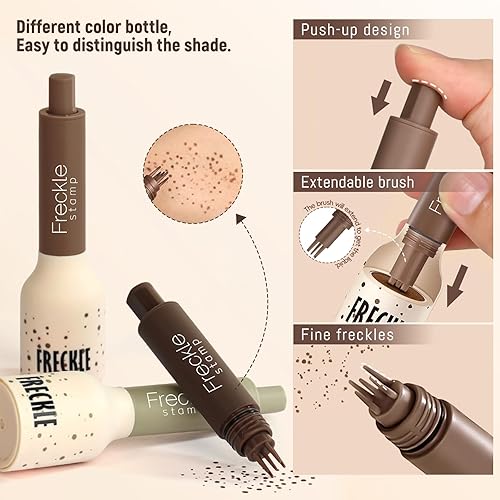Magic Freckles Stamp: Enjoy a chic, sun-kissed freckle makeup with this unique freckle stamp pen! Featuring a 5 micro-dots tip, it delivers a real natural freckle spots conveniently, giving a daily born freckle look. 2 colors in 1 set, each bottle has different color to help you distinguish the shade. Get ready for a healthy sunny look, easily achieve with this stamp!