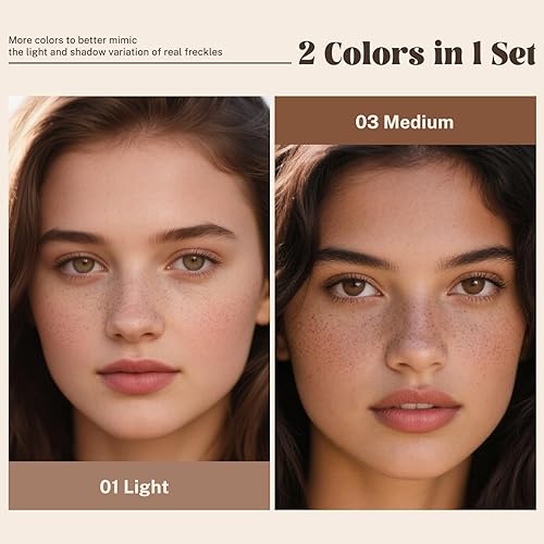 2 in 1 Compact Design: Featuring a micro-dot freckle stamp and a precise single prong for detail enhancement in 1 pen, this compact design freckle pen includes everything you need for a delicate freckle look. 2 colors in 1 set, can be used together to better mimic the light and shadow variations of real freckles. Achieve a cute sun-kiss freckles makeup easily!