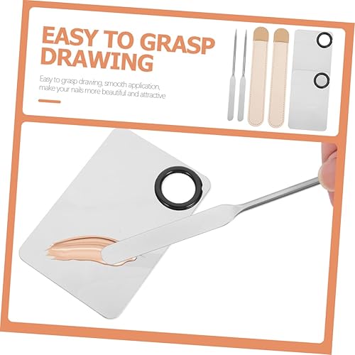 NOLITOY 2sets Stainless Steel Makeup Spatula and Mixing Plate Leather Case for Professional Beauty Home Use and Nail Salons