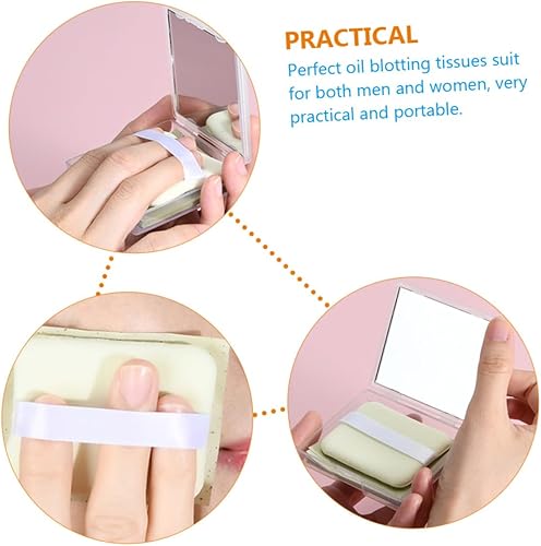 NOLITOY Blotting Sheets with Mirror and Puff for Face Lightweight Facial Oil Absorbing Paper for Oily Skin Portable Makeup Friendly for Men and Women