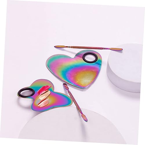 NOLITOY Heart Shaped Makeup Mixing Plate with Spatula Stainless Steel Cosmetic Mixing Tray for Nail Polish Lipstick and Pigment Blending Durable and Easy to Clean