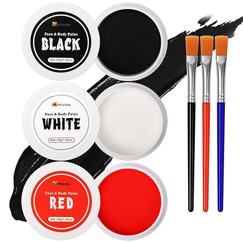 nsxsu 10 UV Colors Face Paint Markers + Black White Red Face Paint with Brushes