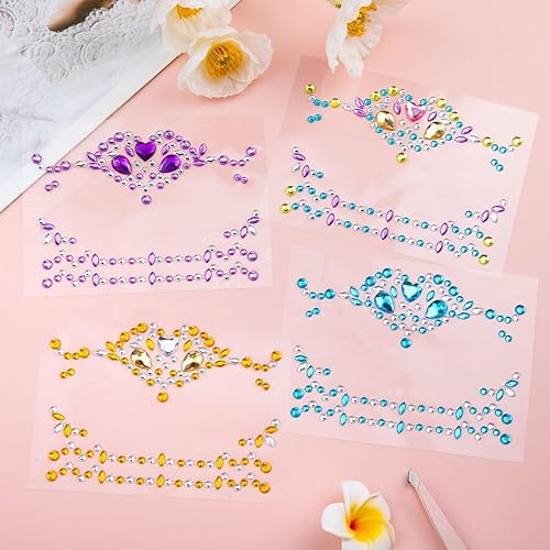 Package Includes: You will receive 4 sheets of colorful rhinestone face eye stickers, including waterdrop jewelry stickers, oval face gems, round gem stickers, various shapes and sizes. The sufficient quantity and styles can meet your different makeup needs and they are also good Valentine's Day decorations for women