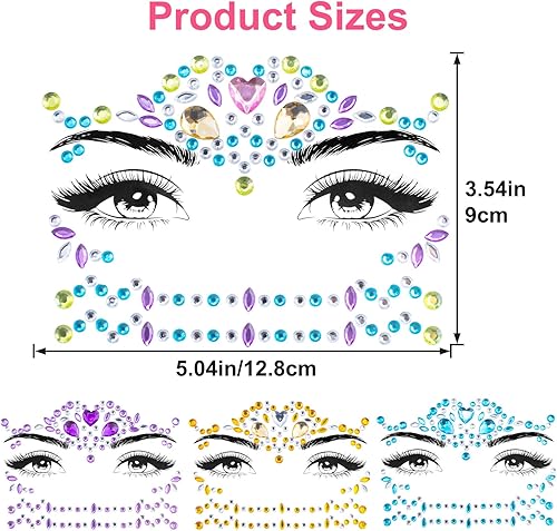 Wide Applications: The cute eye face jewels tattoo stickers are great body decoration for Halloween, Christmas, Valentine's Day, Easter Day, rave theme parties, dancing, events, birthday and so on, just enjoy the process of designing your unique face jewel makeup