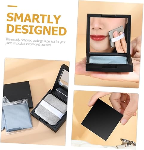 Oil Blotting for Face with Mirror and Powder Puff Portable Oil Absorbing Paper for Women and Men Thin Skin Friendly Facial Blotting Tissue and Makeup Touch Up