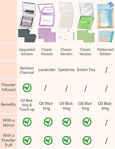 Comment on "Oil Blotting Paper with Powder - 300 Sheets with Mirror, Puff & Refills, Absorbs Excess Face Oil, Controls Shine, Gentle for Makeup Use(3 Count (Pack of 1))"
