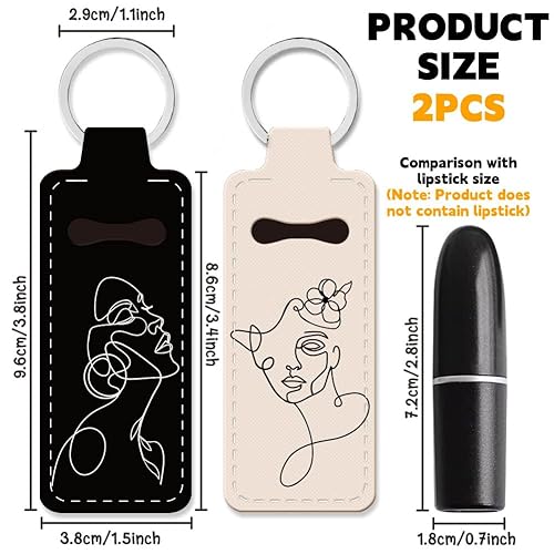 Package Included--The package includes 2pcs lipstick keychains, the size is about 38mm/1.5 inch wide, 96mm/3.8 inch long, ring is 29mm/1.1 inch. Easy to put in and take out lip balm or lipstick, difficult to fall out