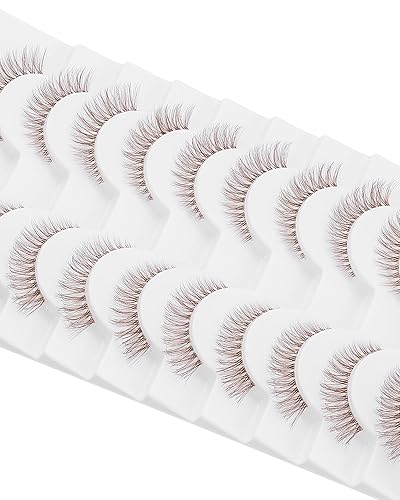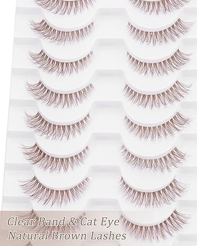 outopen 10 Pairs Brown Lashes Natural Look Cat Eye Brown Eyelashes Wispy Clear Band Eye Lash Short Fake Eyelashes(A09-Short Brown Lashes 4-10mm)