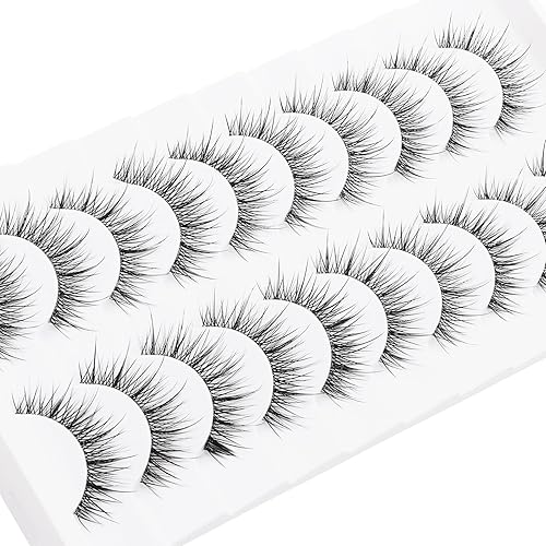 outopen 10 Pairs Manga Lashes Natural Look Clear Band Lashes Japanese Anime Eyelashes Asian Style False Eyelashes Wispy Thin Band False Lashes Korean Makeup Fake Eyelashes Fairy Lash Clusters(Y60 Fairy Style)