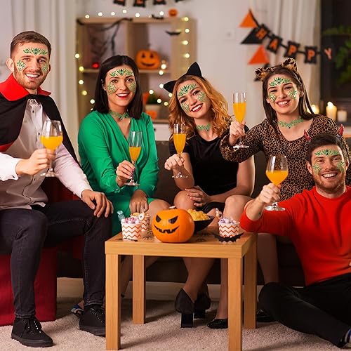 Versatile Application: Face Jewels Stickers Halloween Ivy Costume works not only on facial areas like cheekbones, eyes, and forehead but also decorates collarbones, shoulders, arms, and more. Perfect for music festivals, clubs, Halloween parties, or photo shoots, Green Costume Accessories Face Gems Jewels is the ideal choice for head-to-toe sparkling accents.