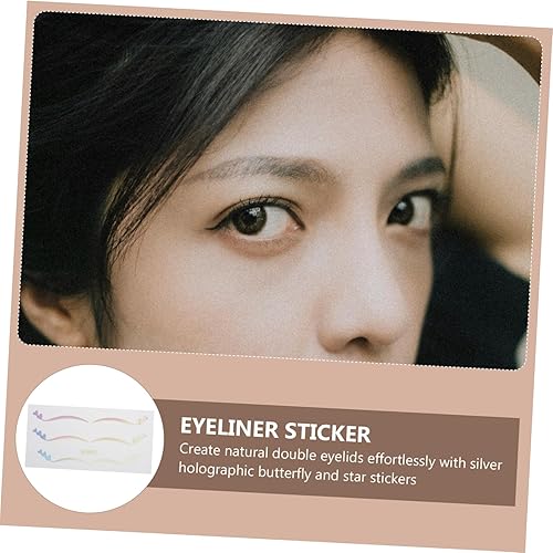 PartyKindom 4Sheet Holographic Butterfly Star Double Eyelid Stickers for Eye Makeup Temporary Eyeshadow Stickers for Women for Halloween Festival Decoration