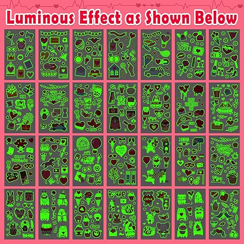 【Valentine’s Day Party Supplies that Will Glow!】These tattoos stickers are suitable for Valentines party supplies, party favors, party decorations, accessories, crafts, goodie bag stuffers, etc. You can also apply them to some smooth objects, such as glass, tile, water bottle, stainless steel, plastic, and so on.