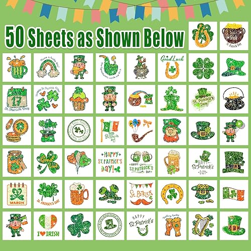 Partywind Glitter St Patrick's Day Tattoos for Decorations, Saint Patrick's Day Accessories for Kids Party Supplies, Irish Shamrock Tattoo Stickers for Green Day Party